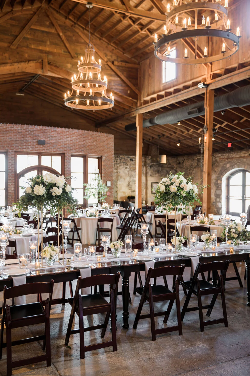 In 2008, the space was thoughtfully transformed into the stunning venue it is today, designed exclusively for hosting unforgettable events. With soaring ceilings of century-old rough-hewn wood, graceful archways, sparkling chandeliers, and carefully curated details, 550 Trackside preserves its turn-of-the-century elegance while offering a timeless setting for every celebration.