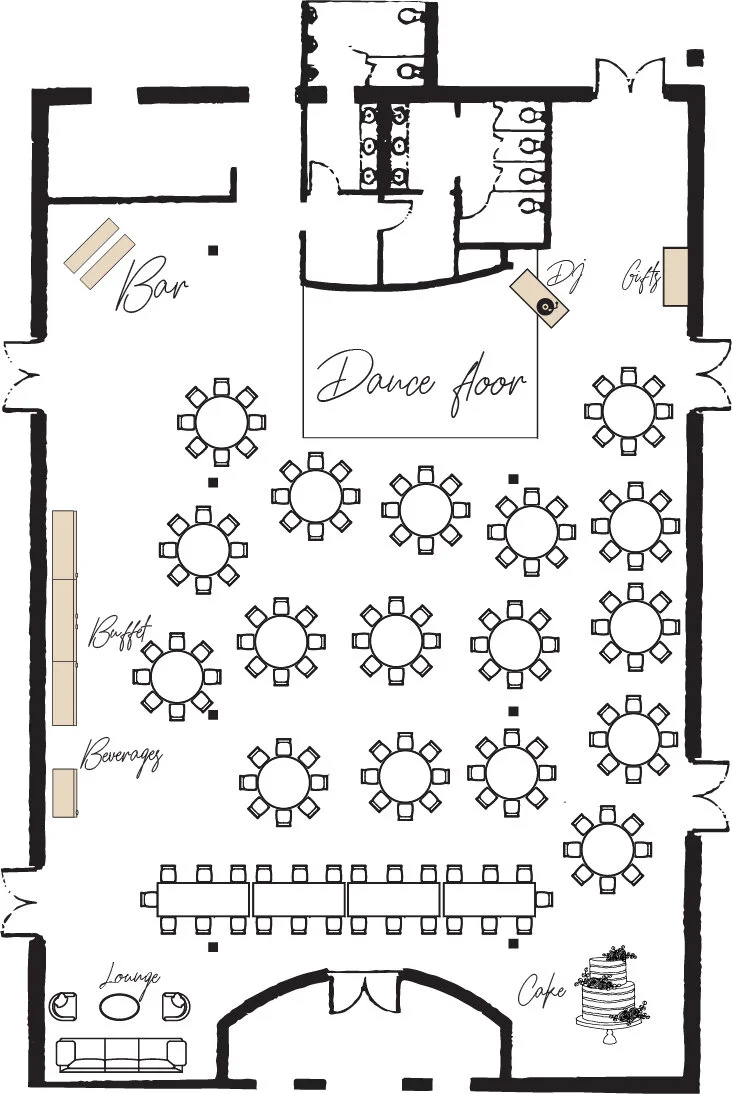 At 550 Trackside, every event is unique. Explore our four thoughtfully designed layouts to see how your ceremony, cocktail hour, and reception can seamlessly come together—helping you visualize the perfect setup for your celebration.